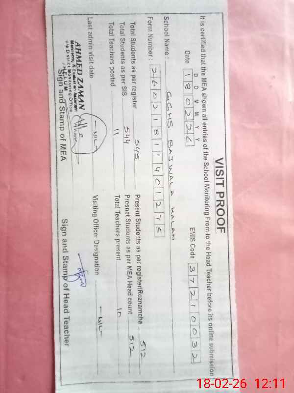 | EMIS Code: 37210032 | Name of School: GGHS BAJWALA KALAN | |||