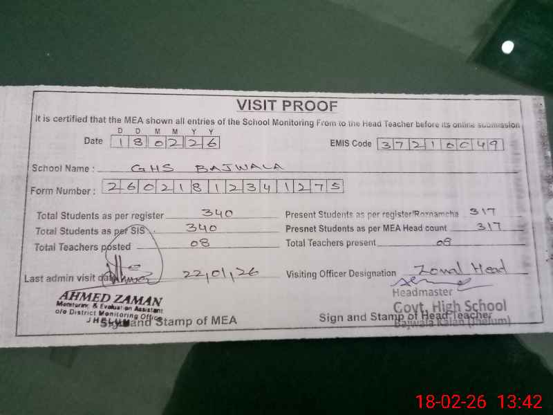 | EMIS Code: 37210049 | Name of School: GHS BAJWALA KALAN | |||