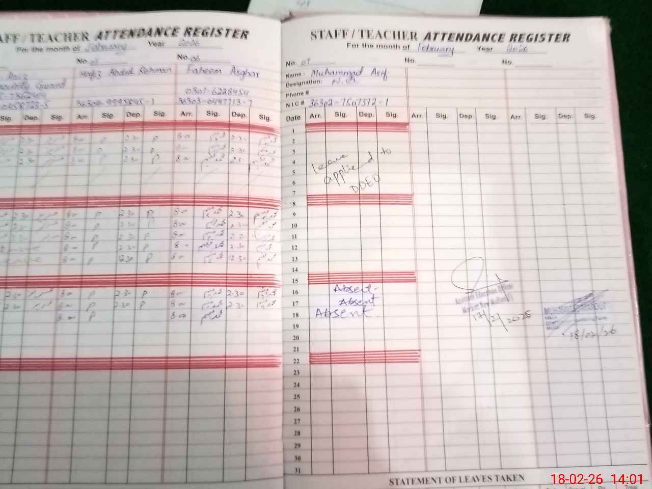 | 36**** | Mu**** As**** Ak**** | NQ | Regular | 0 | 0 | 1 | 0 | 0 | 0 | 0 | 0 | 0 | Absent (Un-Authorized) |