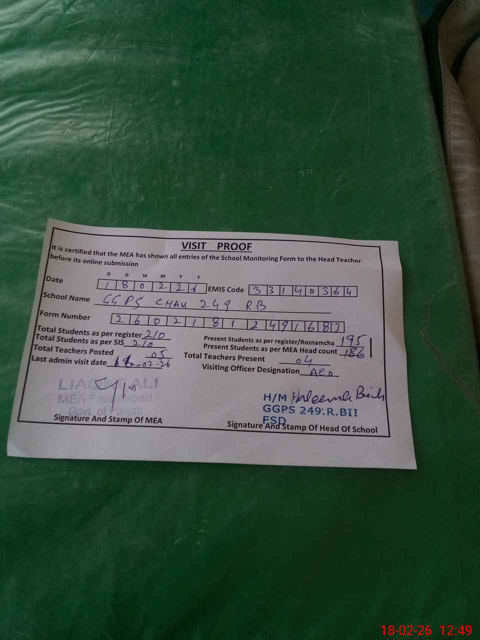 | EMIS Code: 33140364 | Name of School: GGPS CHAK 249 RB | |||
