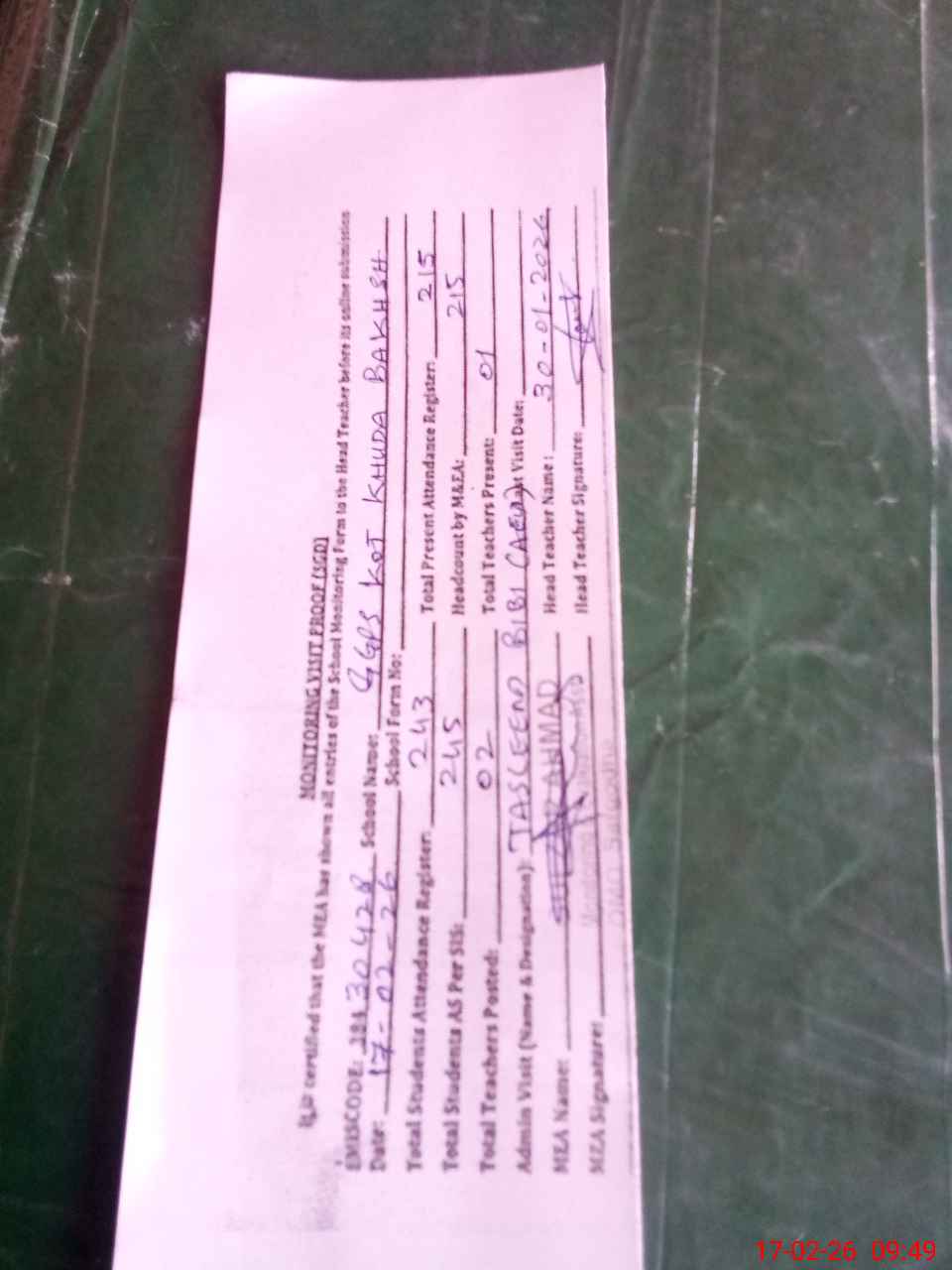 | EMIS Code: 38430428 | Name of School: GGPS KOT KHUDA BAKHSH | |||