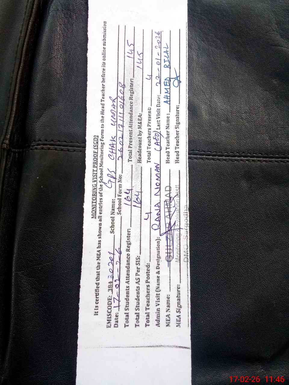 | EMIS Code: 38430201 | Name of School: GPS CHAK UMER | |||