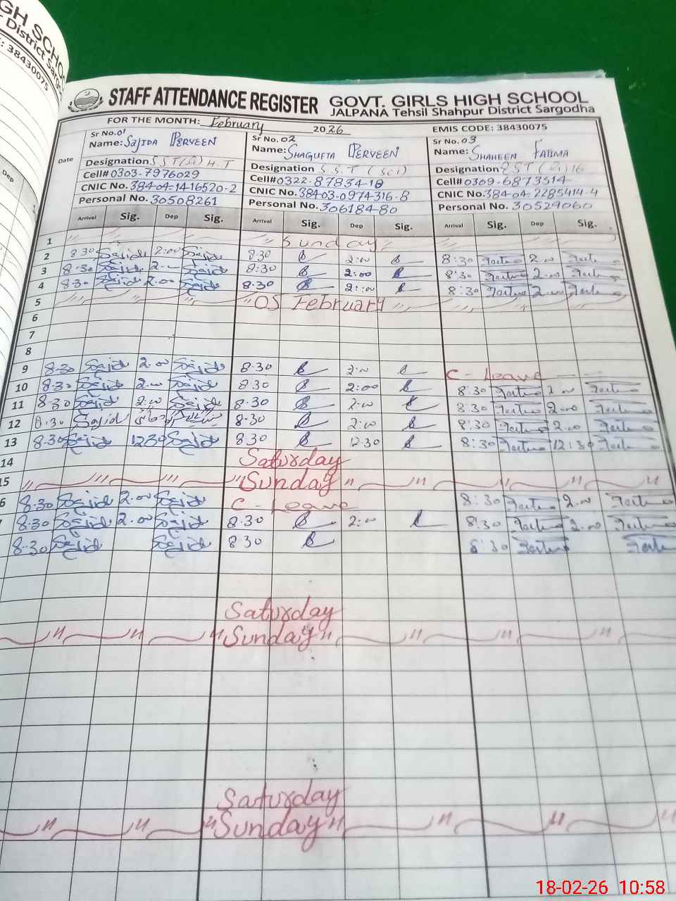 | Name: SA**** PA**** Designation: (School Headmaster's/Headmistress's) S.S.T. (GENERAL) Phone/Cell Number: 03**** |