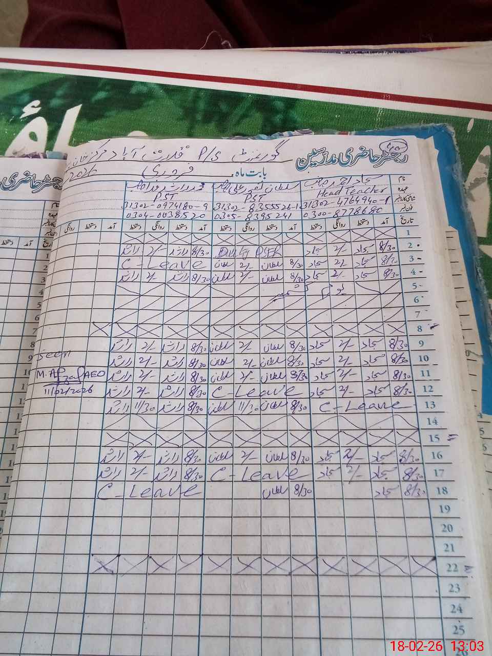 | Name: SA**** AH**** Designation: (School Headmaster's/Headmistress's) PST Phone/Cell Number: 03**** |