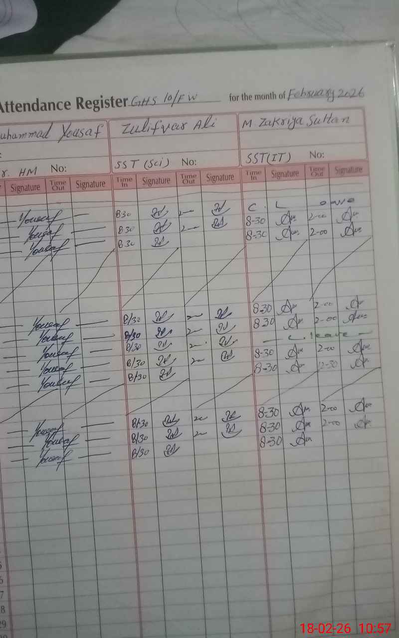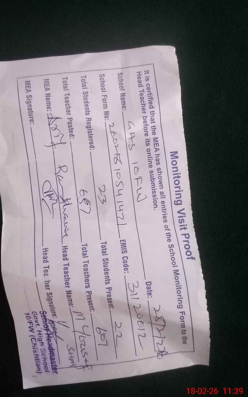 | EMIS Code: 31120012 | Name of School: GHS CHAK NO. 10/FW | |||