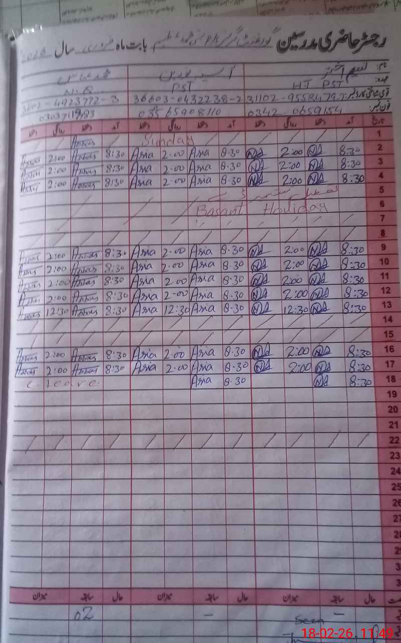 | Name: NA**** AK**** Designation: (School Headmaster's/Headmistress's) PST HT Phone/Cell Number: 03**** |