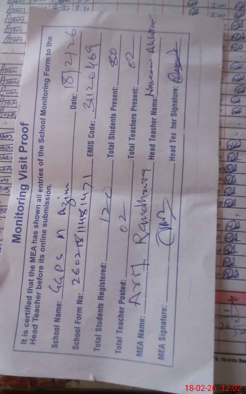 | EMIS Code: 31120469 | Name of School: GGPS BASTI MUHAMMAD AZIM | |||