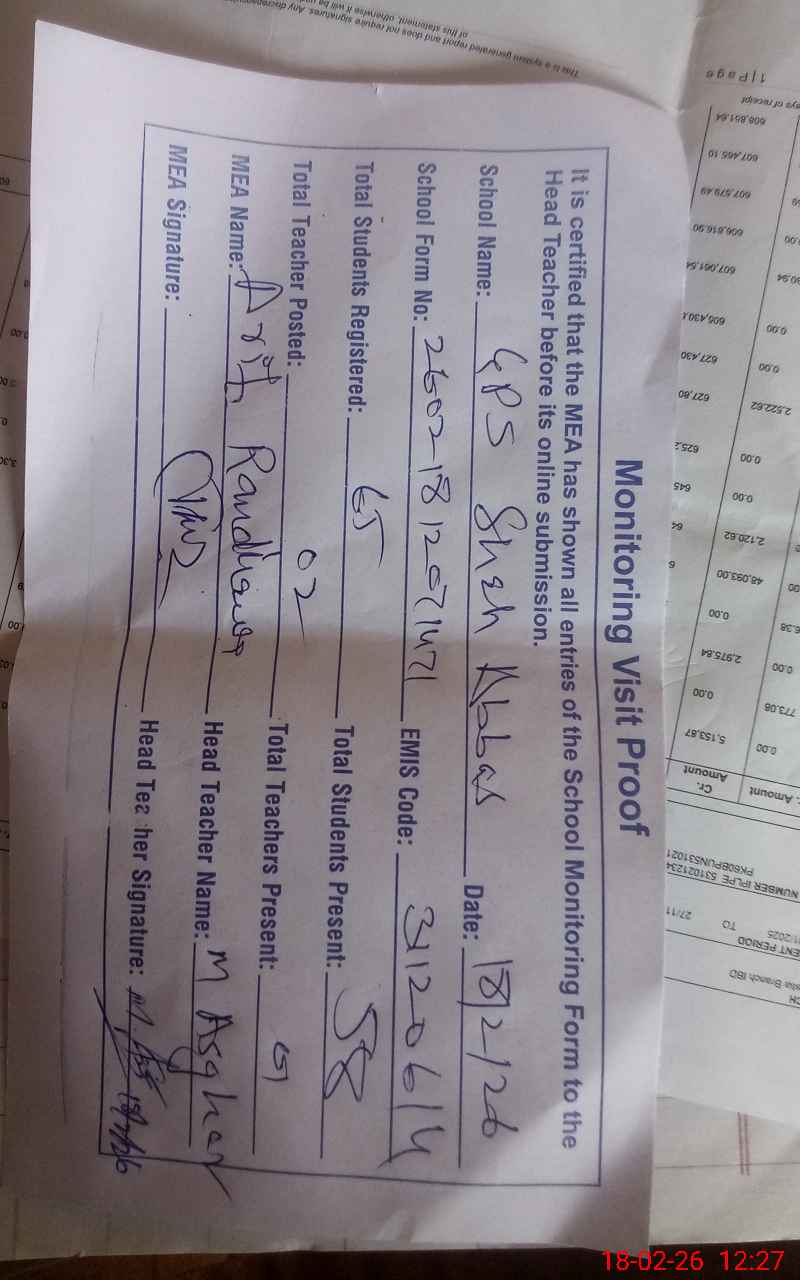 | EMIS Code: 31120614 | Name of School: GPS SHAH ABBAS | |||