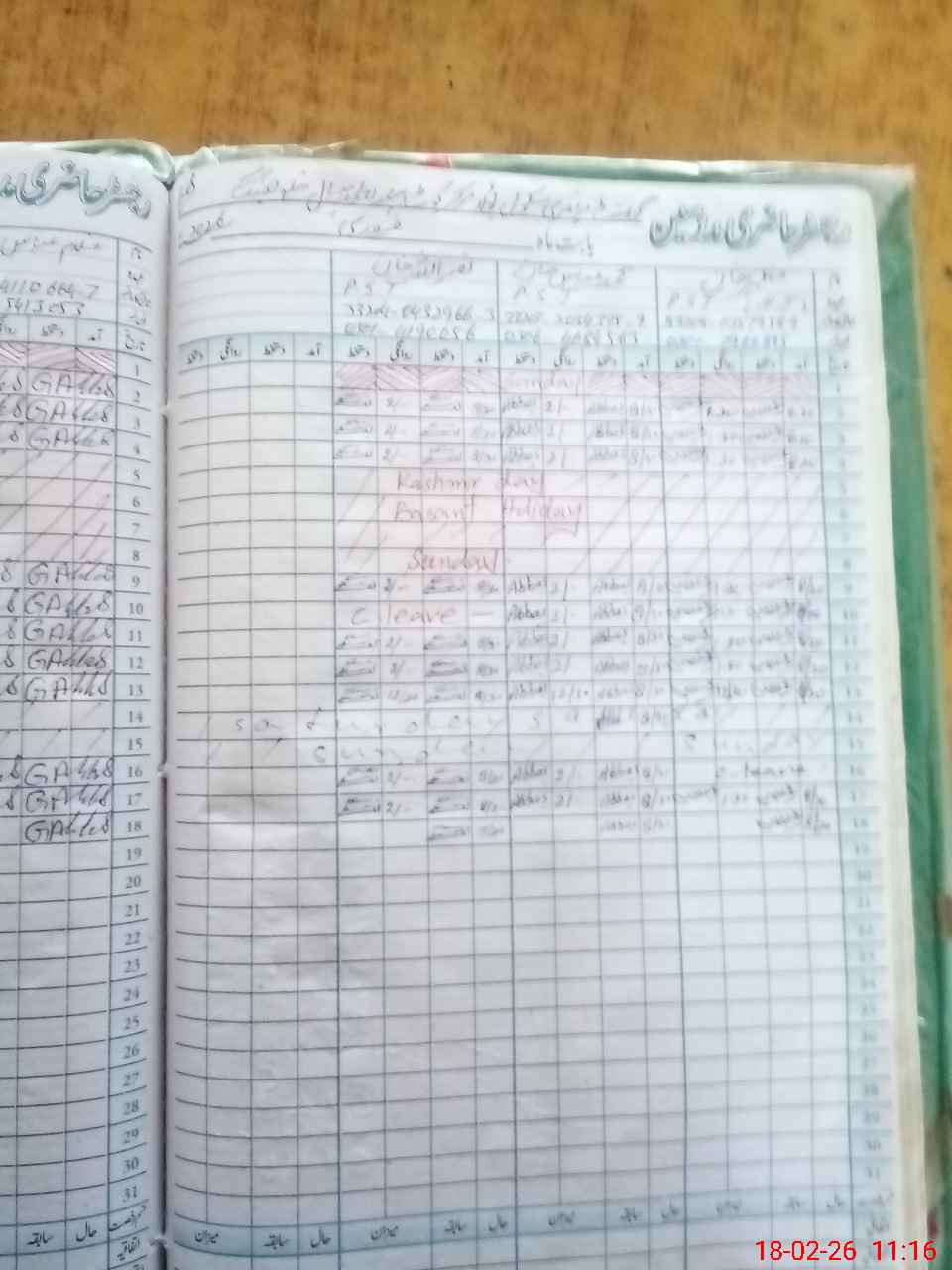 | CNIC | Full Name | Designation | R/C | Absence During Last Calender Month |