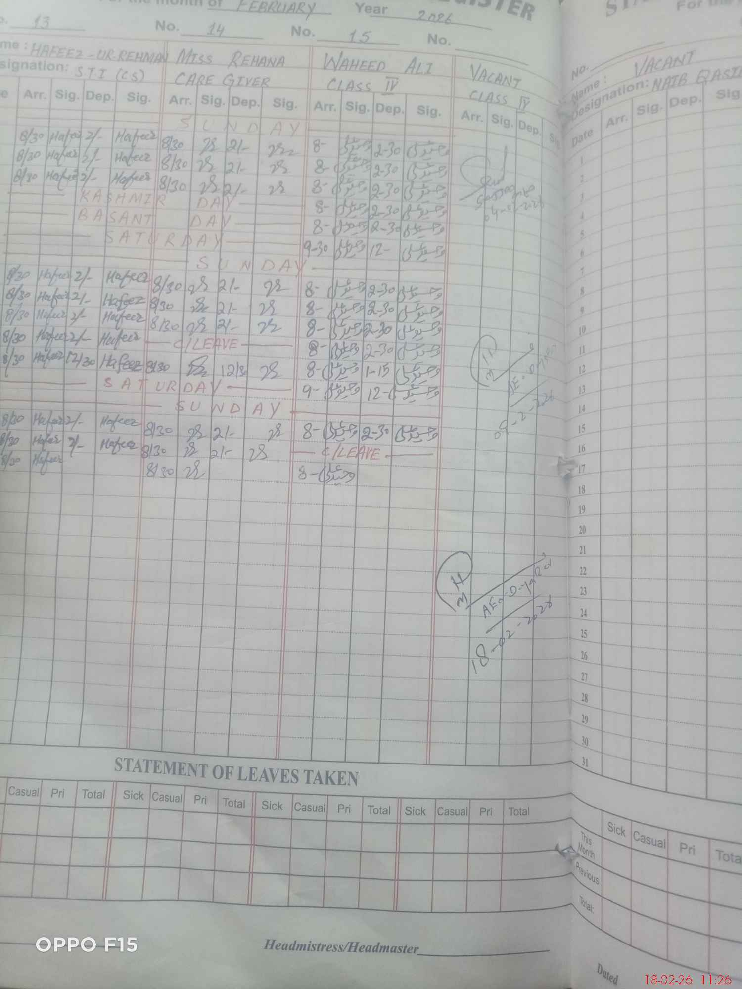 | Leave | Duty | Absent | Maternity | Medical | Ex- Pak |