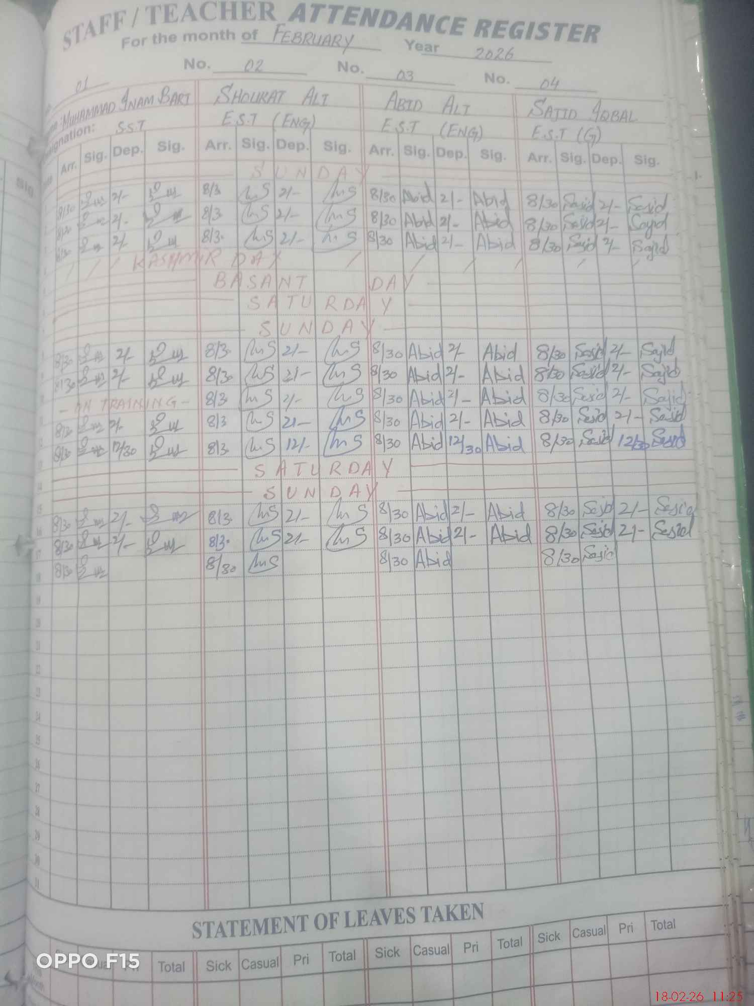 | Monitoring Date: 18-02-2026 | Start Time: 18-02-2026 11:09 AM | End Time: 18-02-2026 11:28 AM | Name of MEA: Ha**** Mu**** Mu**** | |