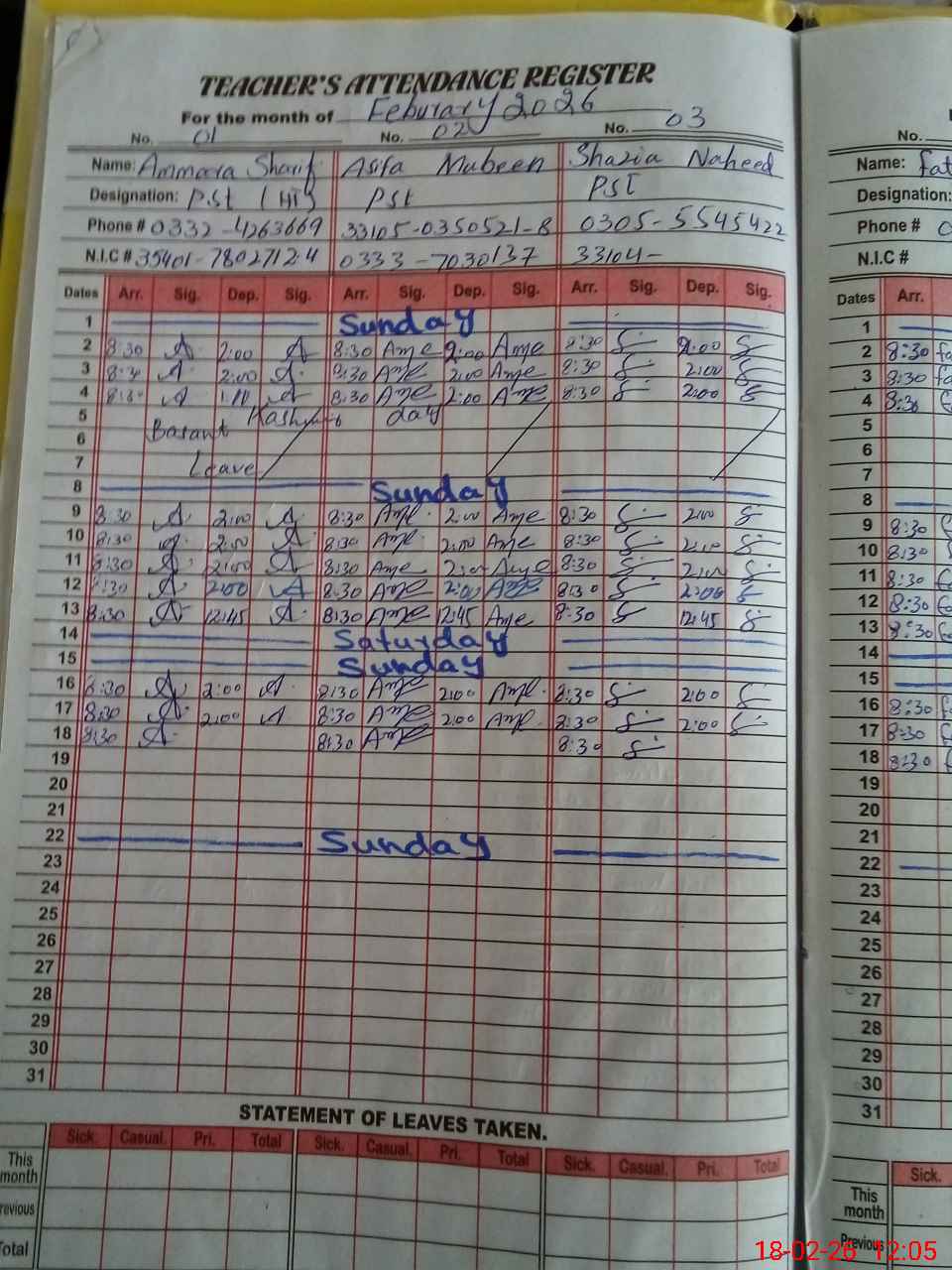 | Name: AM**** SH**** Designation: (School Headmaster's/Headmistress's) PST Phone/Cell Number: 03**** |