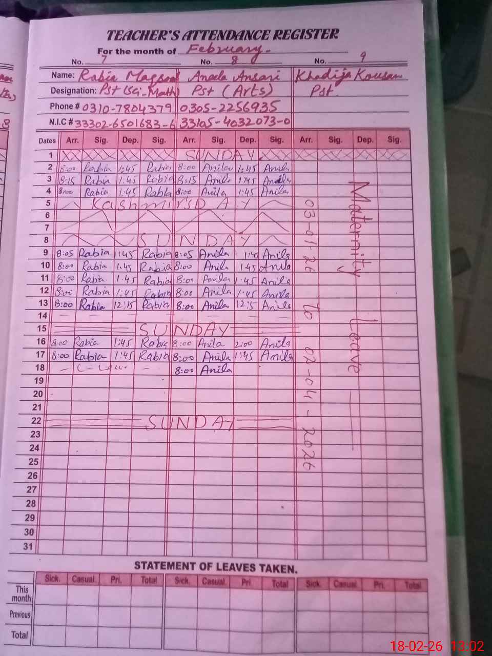 | 33**** | Ra**** Ma**** | PST Science/Maths | Regular | 0 | 0 | 0 | 0 | 0 | 0 | 0 | 0 | 0 | Casual |