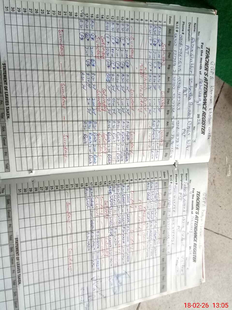| Name: Fa**** Sh**** Designation: (School Headmaster's/Headmistress's) PST Phone/Cell Number: 03**** |