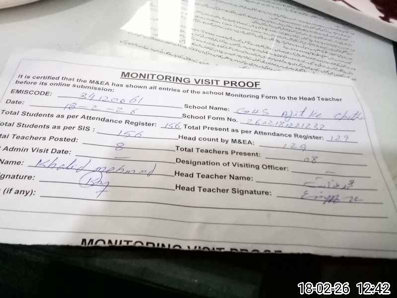 | EMIS Code: 34120061 | Name of School: GHS AJITKE CHATHA | |||