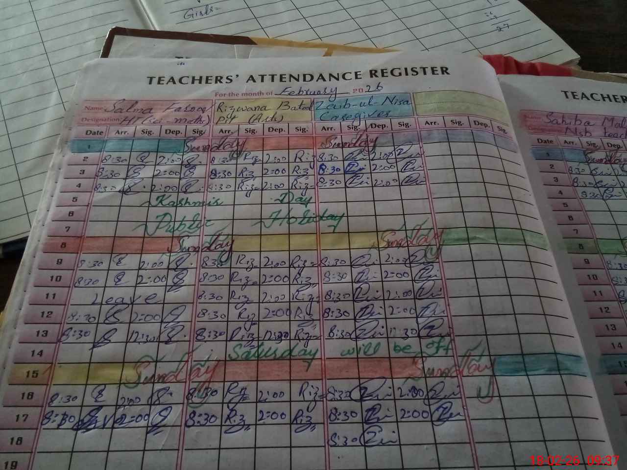 | 36**** | Sa**** Fa**** | PST Science/Maths | Regular | 0 | 0 | 0 | 0 | 0 | 0 | 0 | 0 | 0 | Absent (Un-Authorized) |