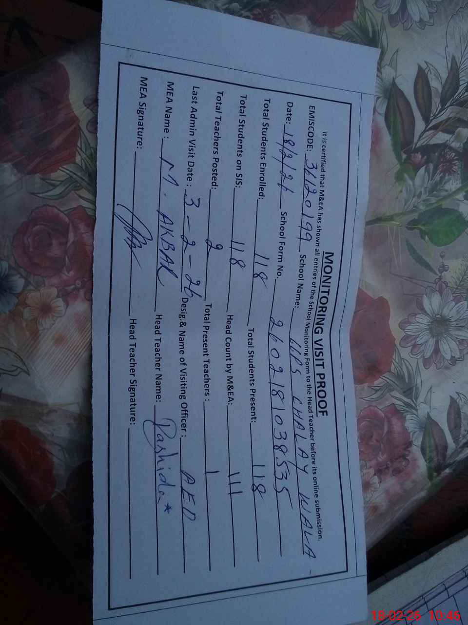 | EMIS Code: 36120199 | Name of School: GGPS CHALAY WALA SHUJABAD DISTT. MULTAN | |||