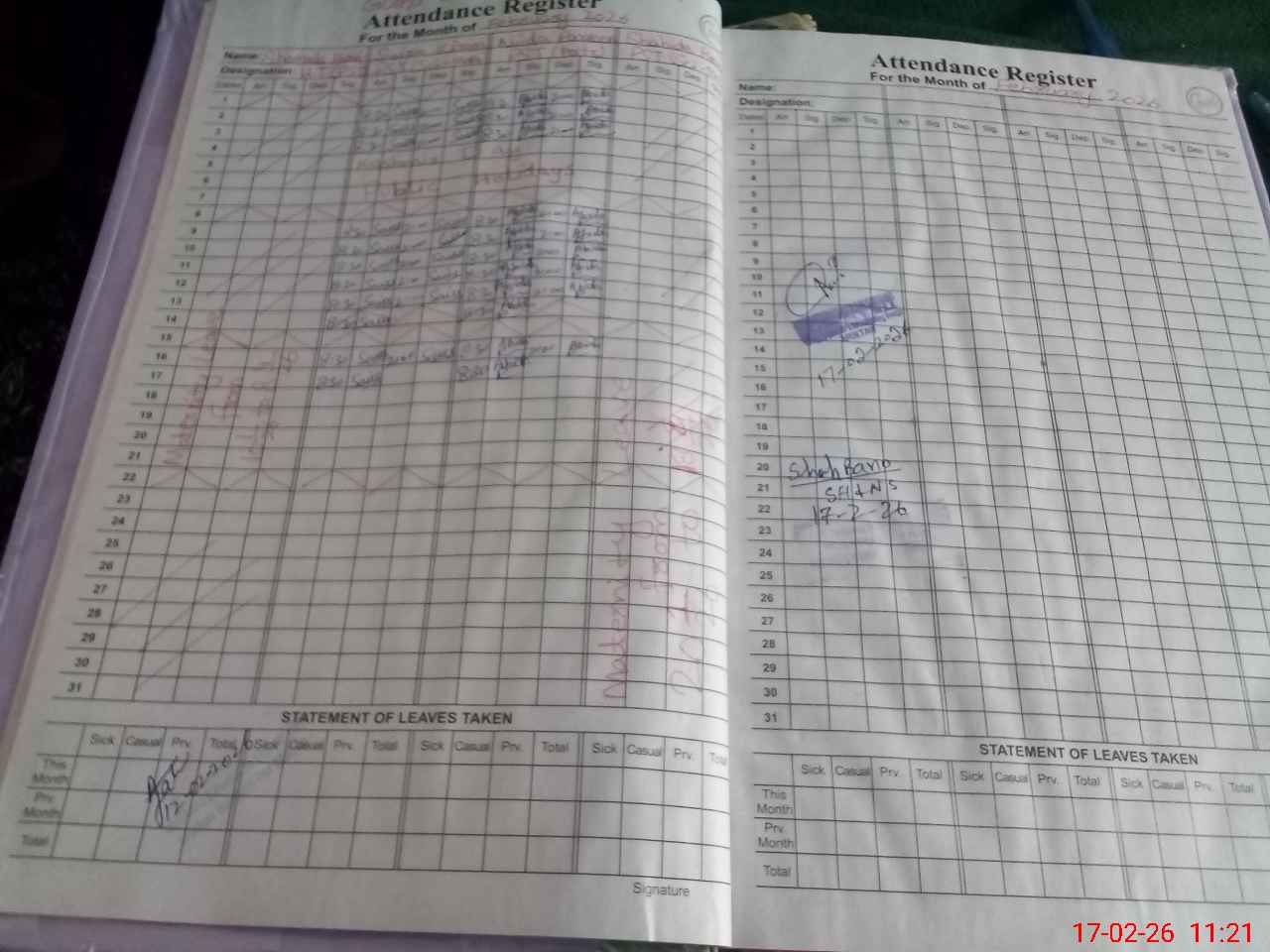 | Leave | Duty | Absent | Maternity | Medical | Ex- Pak |