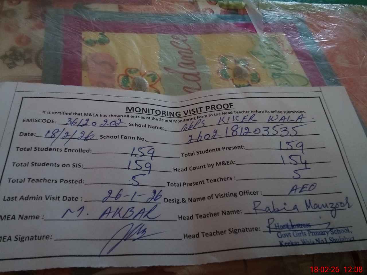 | EMIS Code: 36120202 | Name of School: GGPS KIKAR WALA BASTI KARIM ABAD | |||