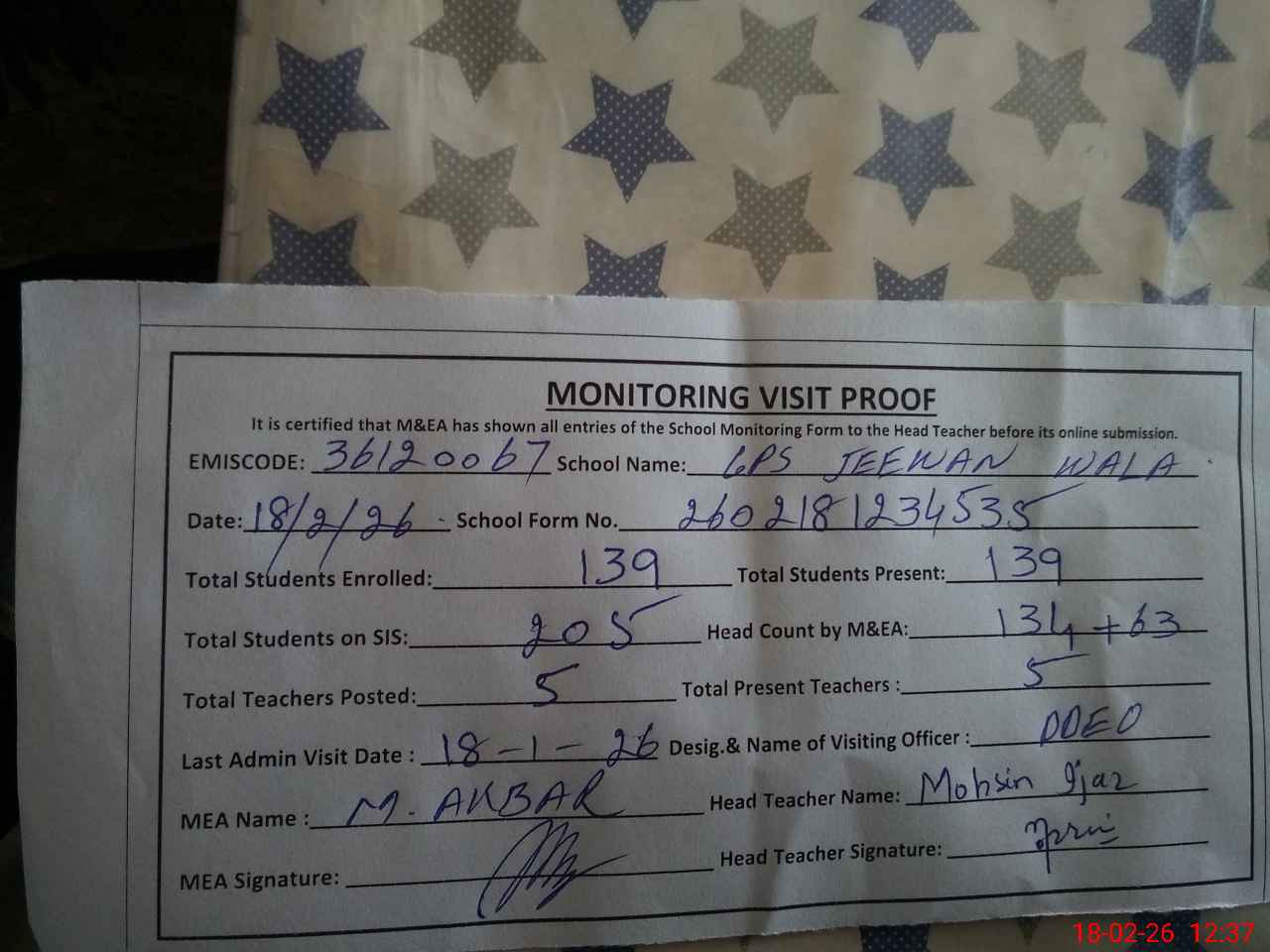 | EMIS Code: 36120067 | Name of School: GPS JIWAN WALA P/O SHUJABAD | |||