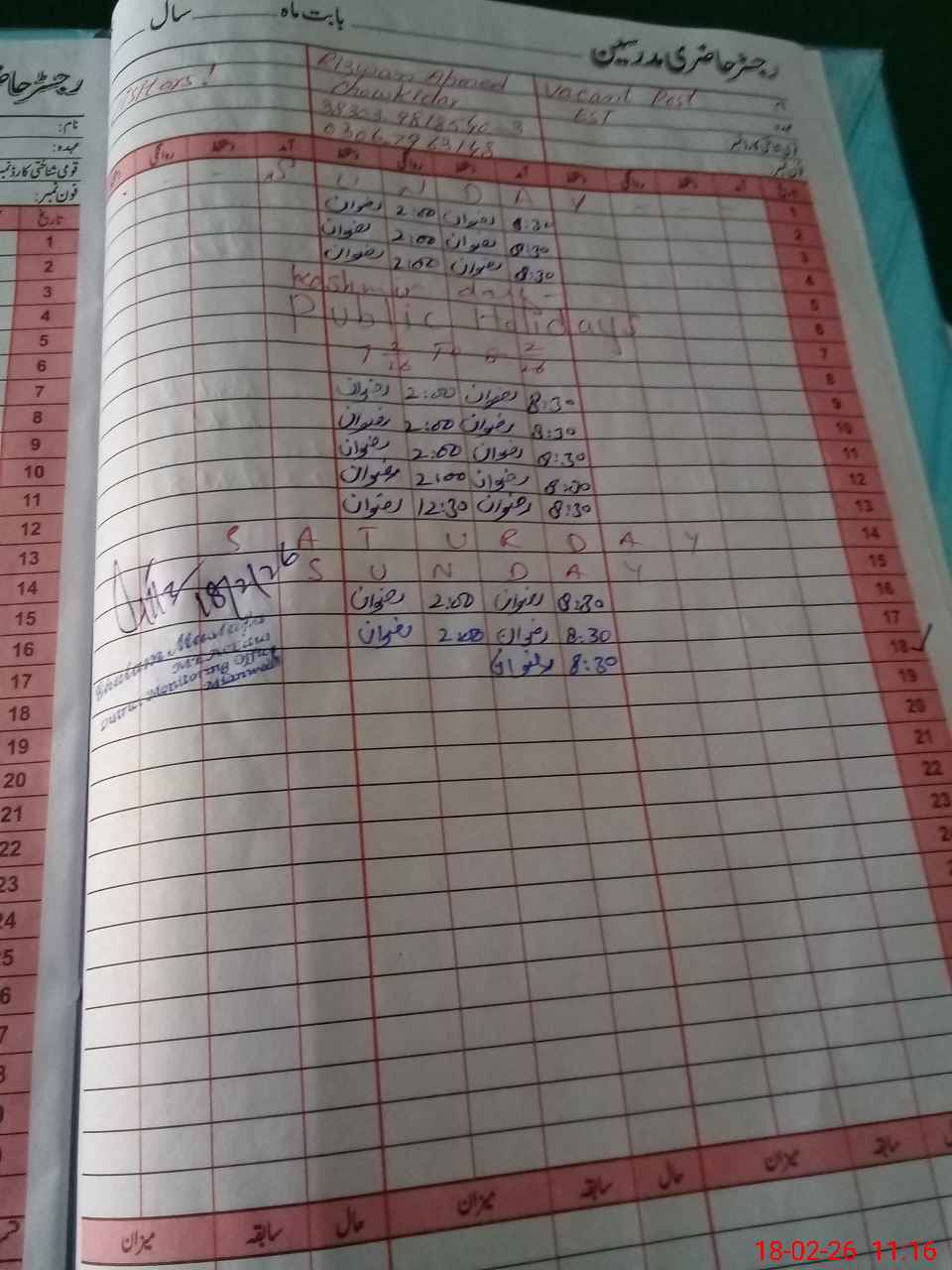 | Name: Sn**** Na**** Designation: (School Headmaster's/Headmistress's) SSE ( ENGLISH ) Phone/Cell Number: 03**** |