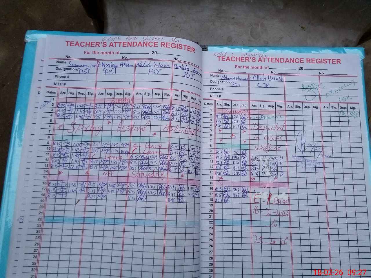 | EMIS Code: 31340464 | Name of School: GGPS SHABAZI SHAR | |||