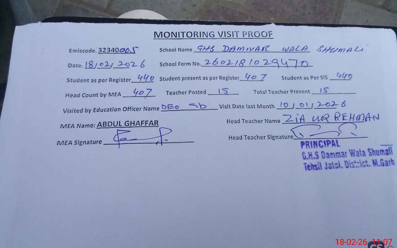 | EMIS Code: 32340005 | Name of School: GHS DAMMER WALA SHUMALI | |||