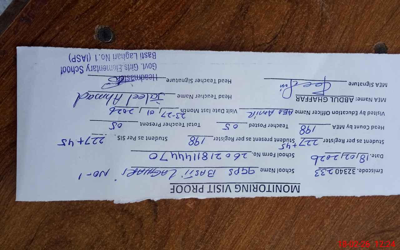 | EMIS Code: 32340233 | Name of School: GGPS BASTI LAGHARI NO. 1 | |||