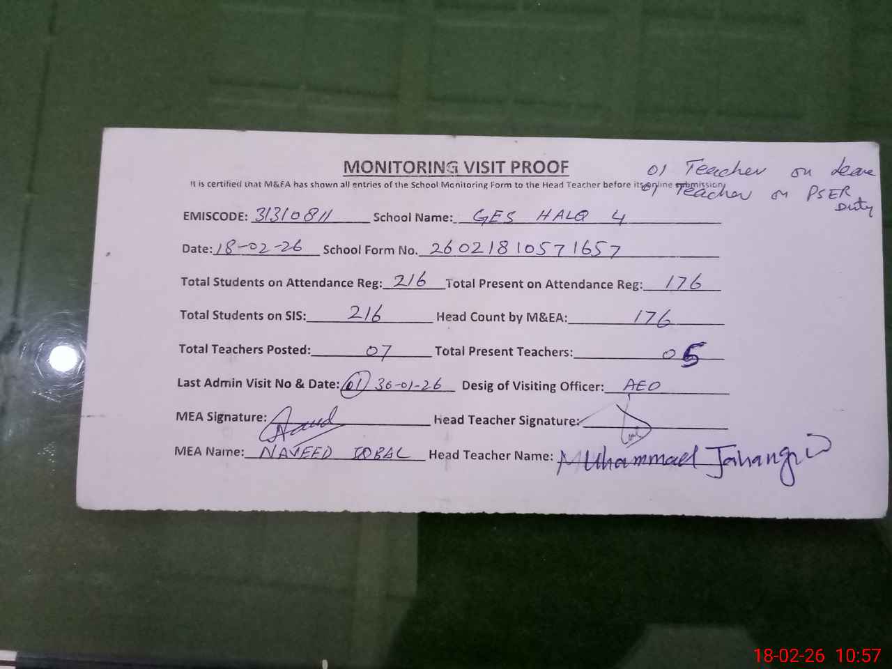 | EMIS Code: 31310811 | Name of School: GES HALQA NO 4 | |||