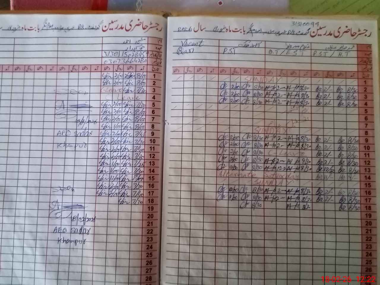 | Name: MSa**** Az**** Designation: (School Headmaster's/Headmistress's) PST Phone/Cell Number: 03**** |