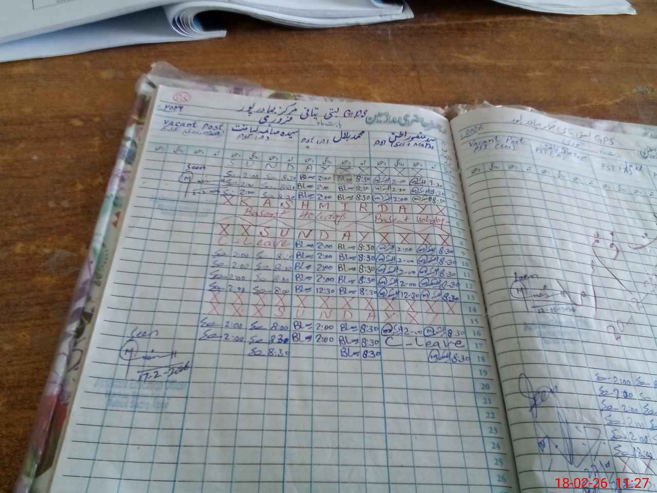 | CNIC | Full Name | Designation | R/C | Absence During Last Calender Month |
