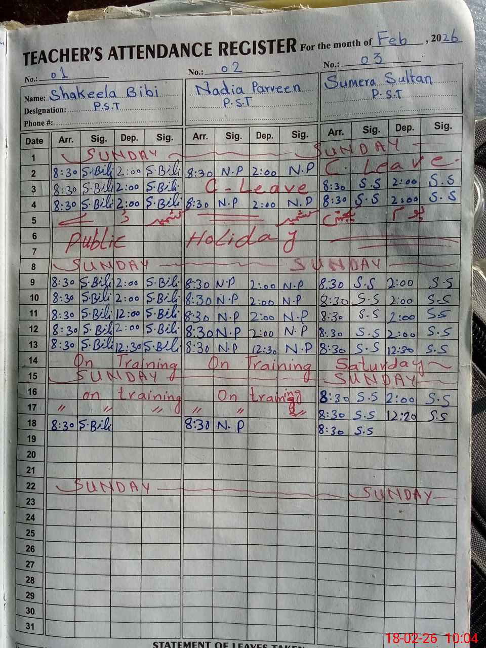 | Leave | Duty | Absent | Maternity | Medical | Ex- Pak |