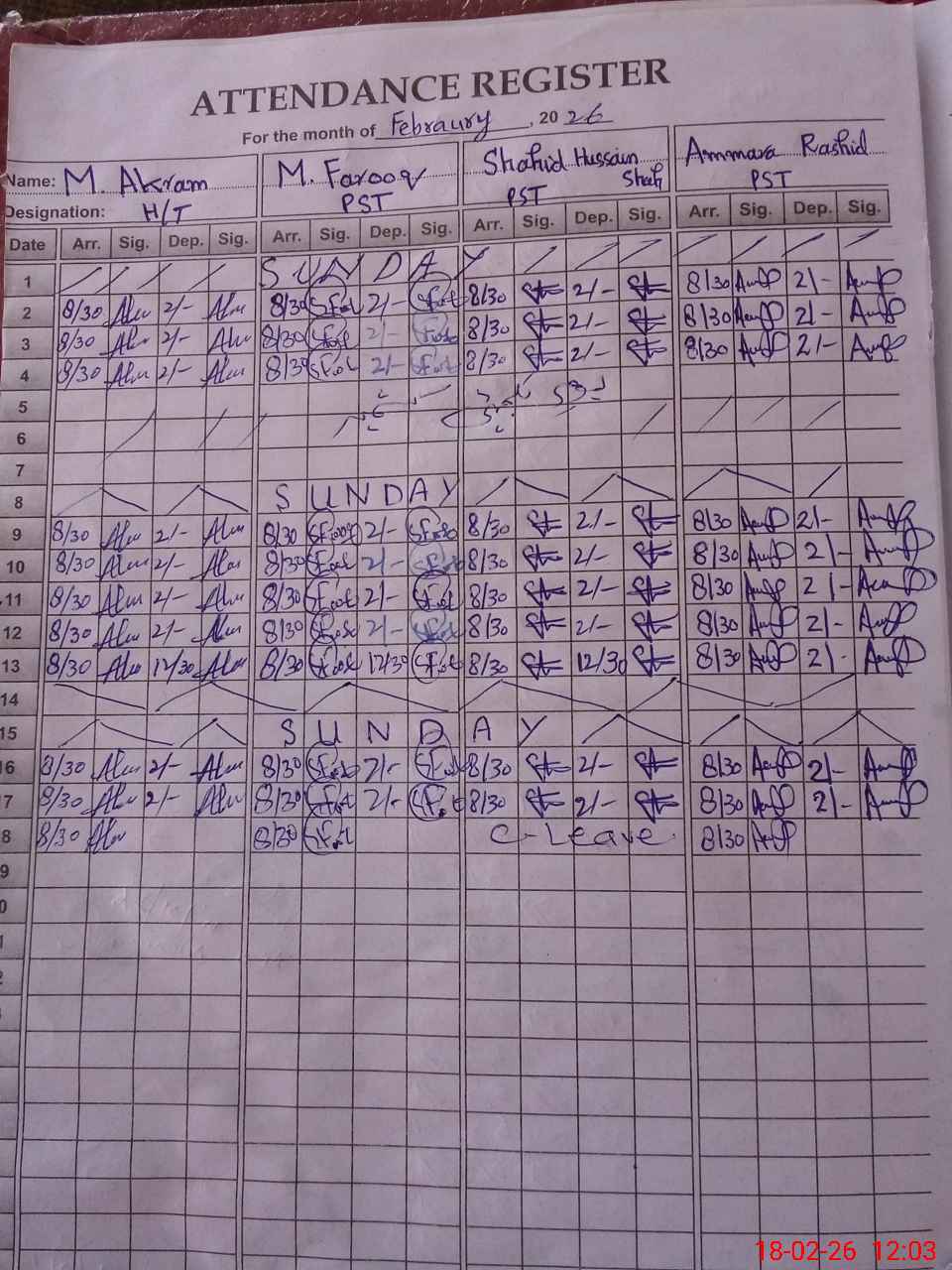 | 36**** | Ja**** Il**** | PST Science/Maths | Regular | 0 | 0 | 0 | 0 | 0 | 0 | 0 | 0 | 0 | Absent (Un-Authorized) |
