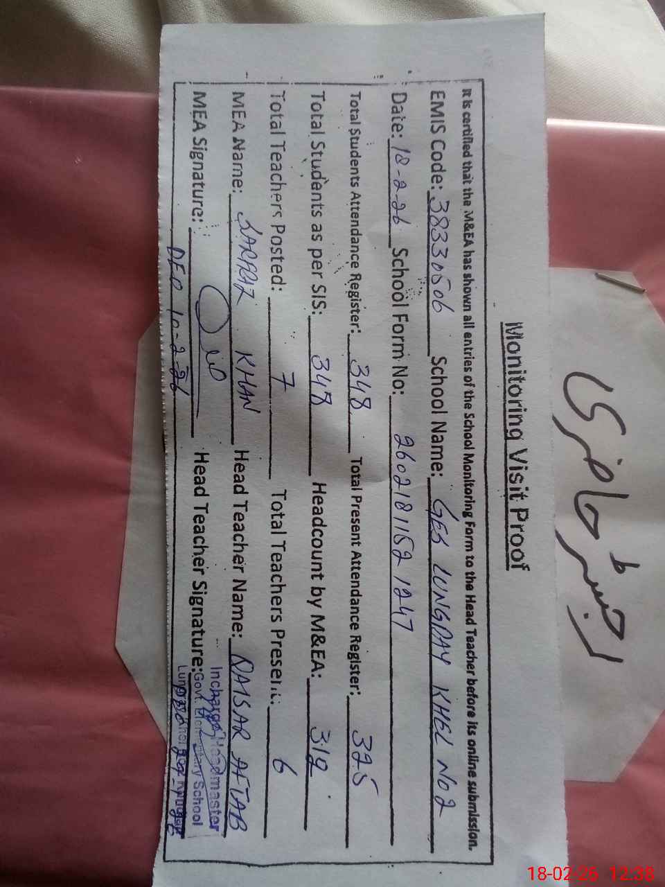 | EMIS Code: 38330506 | Name of School: GES LUNGRAY KHEL NO. 2 PO KUNDIAN | |||