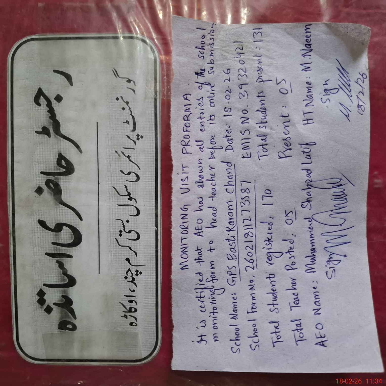 | EMIS Code: 39320421 | Name of School: GPS BASTI KARAM CHAND | |||