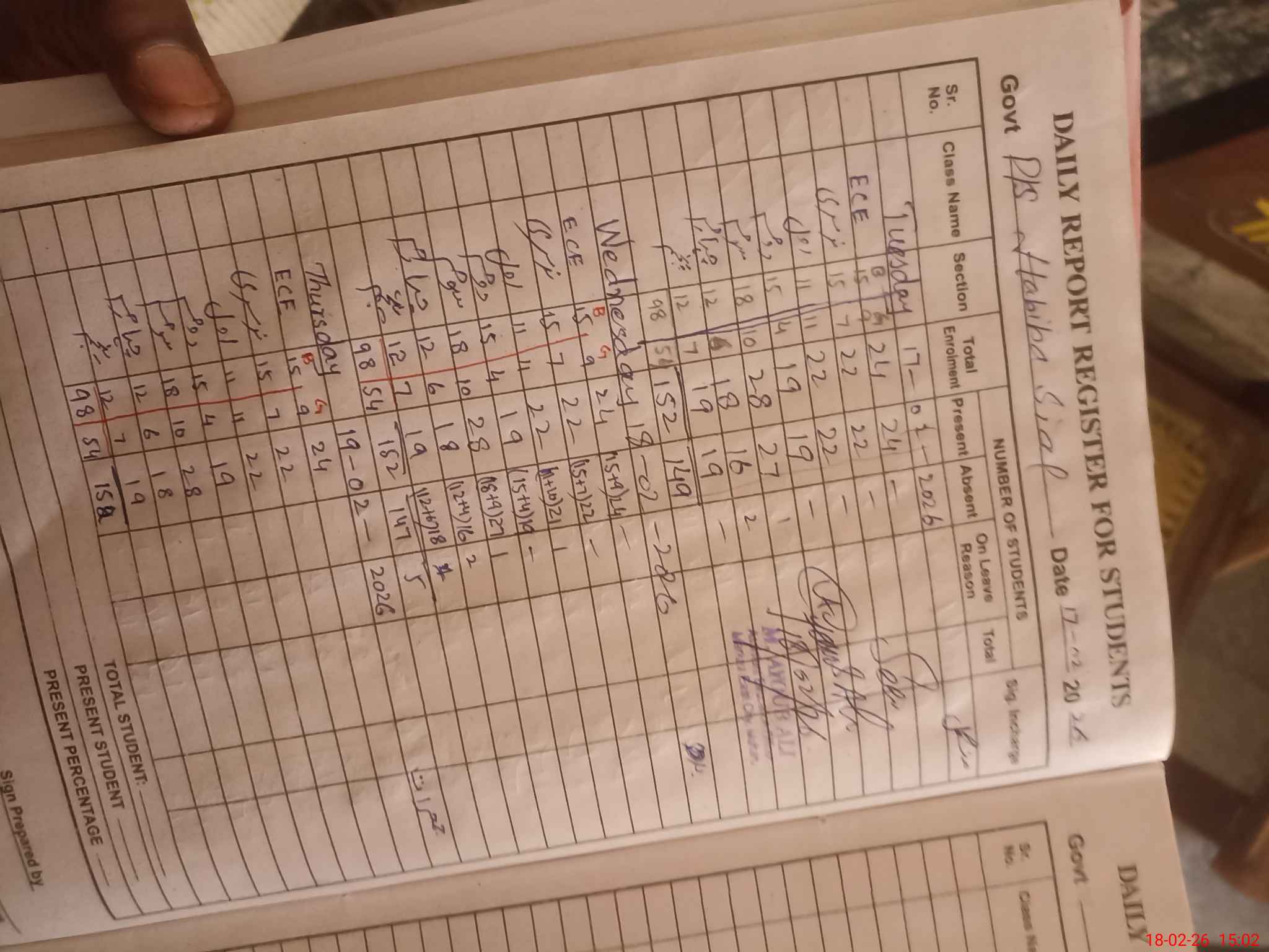 | No. of Students Present - Male | 0 | 15 | 11 | 15 | 18 | 12 | 12 | 98 | ||||||||