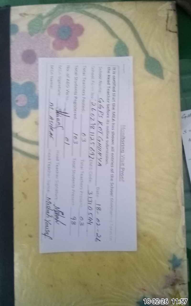 | EMIS Code: 31310544 | Name of School: GGPS KOT GUHINYA MOUZA | |||