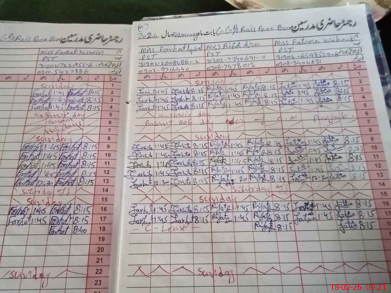 | Name: RI**** AR**** Designation: (School Headmaster's/Headmistress's) PST Phone/Cell Number: 03**** |