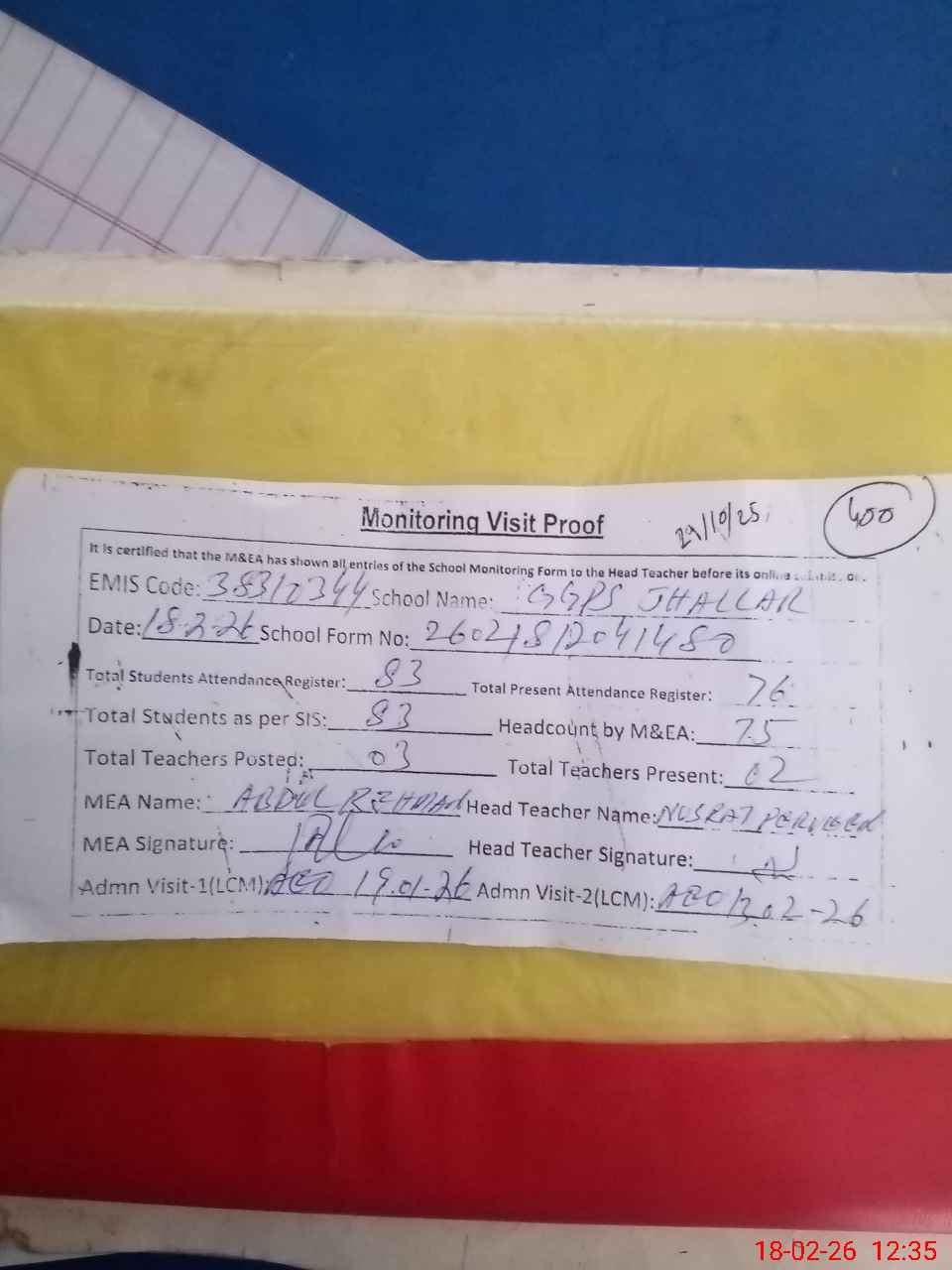 | EMIS Code: 38310344 | Name of School: GGPS JHALLAR | |||