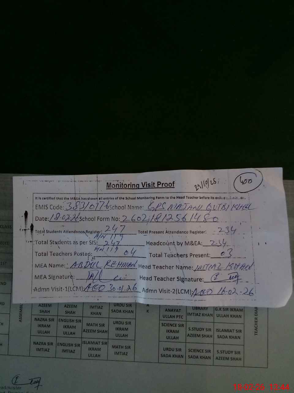| EMIS Code: 38310176 | Name of School: GPS MAJANI QUTBI KHEL | |||