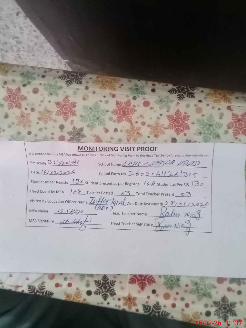 | EMIS Code: 32320391 | Name of School: GGPS ZAFFAR ABAD | |||