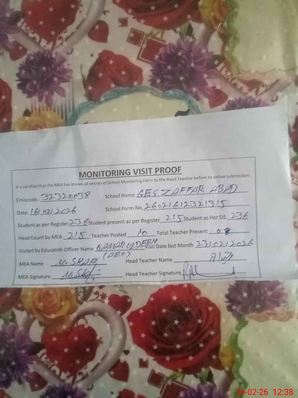 | EMIS Code: 32320038 | Name of School: GES ZAFAR ABAD | |||