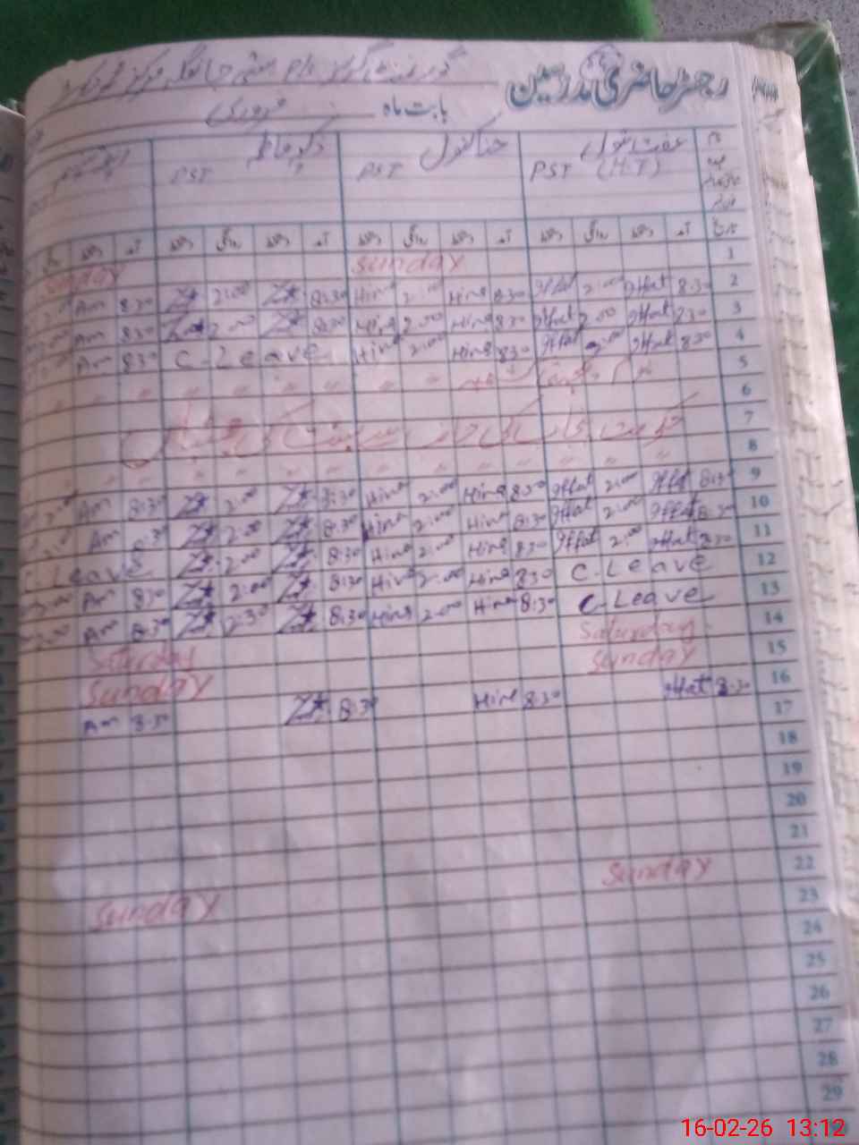 | CNIC | Full Name | Designation | R/C | Absence During Last Calender Month |