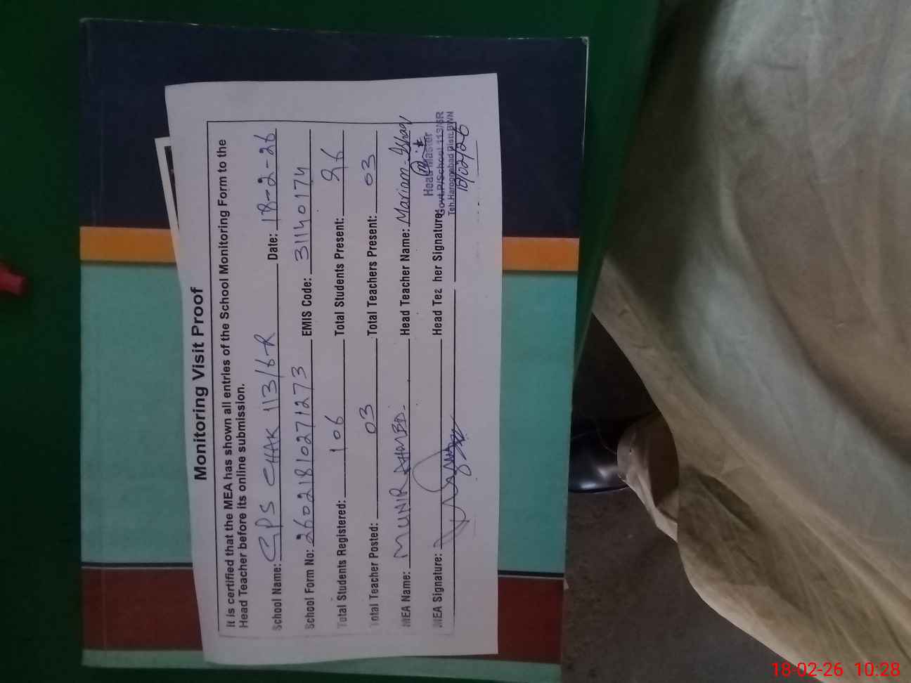 | EMIS Code: 31140174 | Name of School: GPS CHAK NO 113/6-R | |||