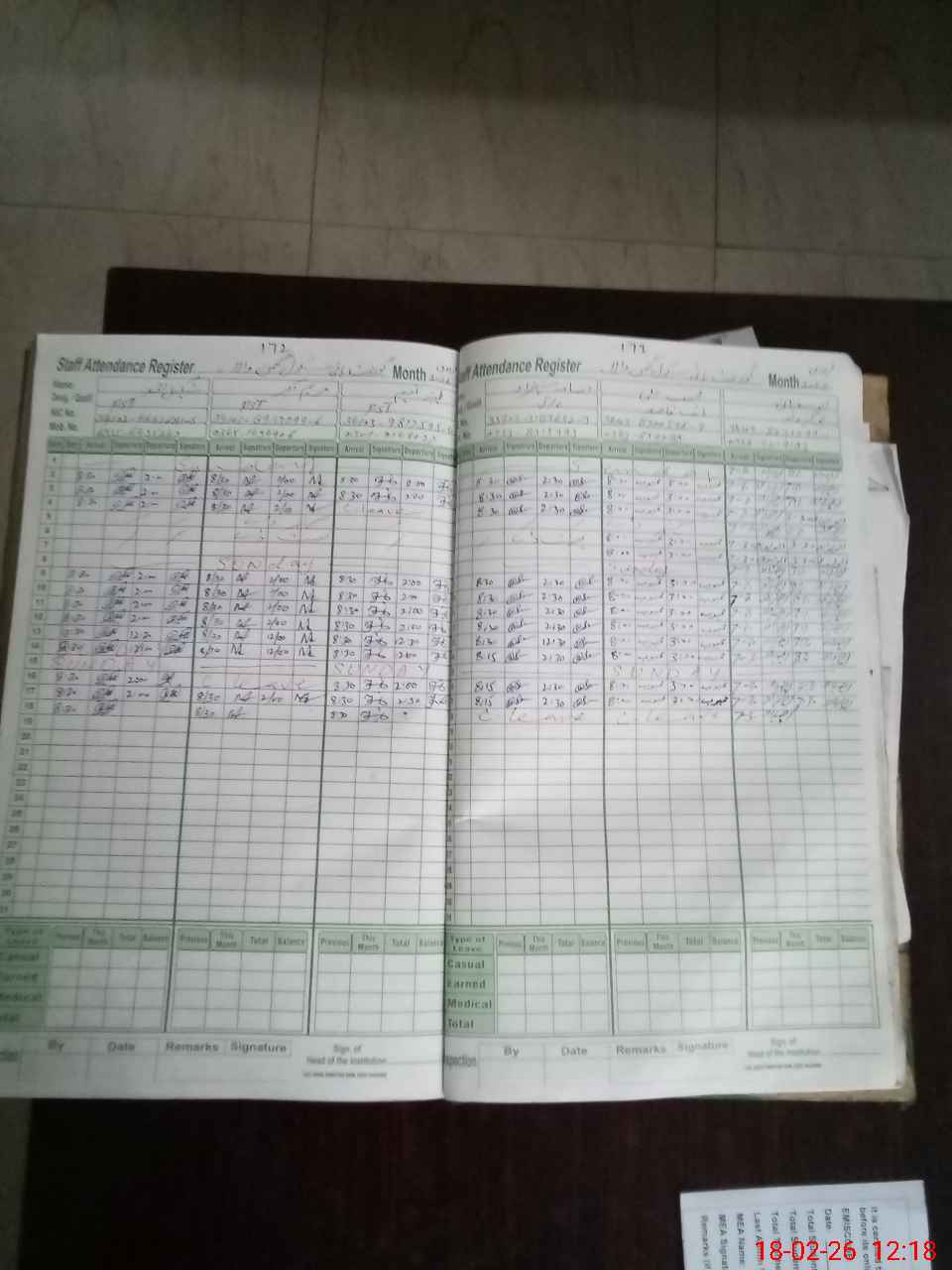 | CNIC | Full Name | Designation | R/C | Absence During Last Calender Month |