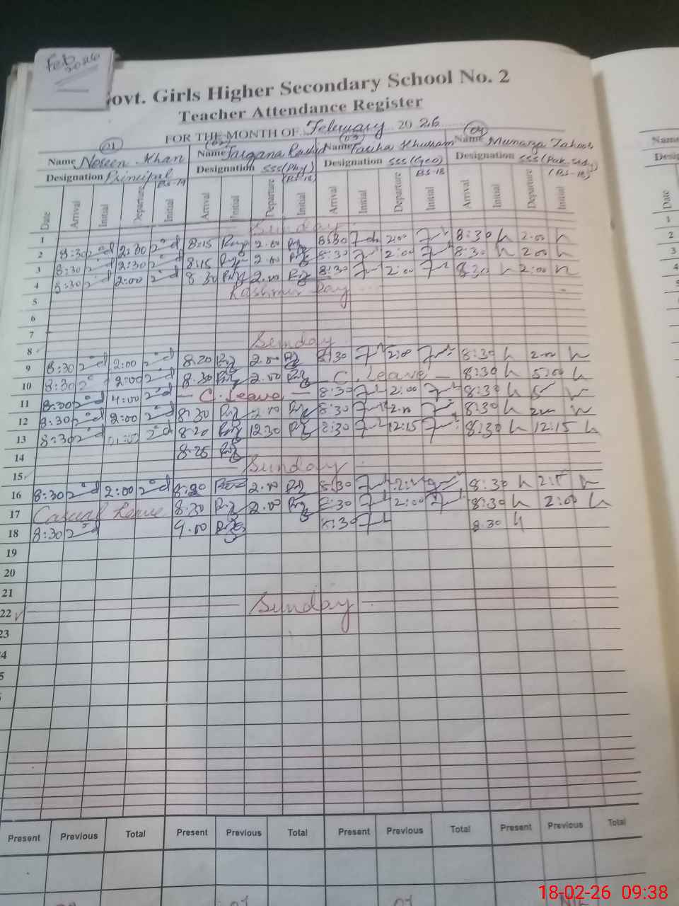 | Remarks (Use Separate Page if Required): Teacher Rashida Saidan SSS and teacher Samia Naseer SST not tage on sis due to munal order both teacher present in school | |||||