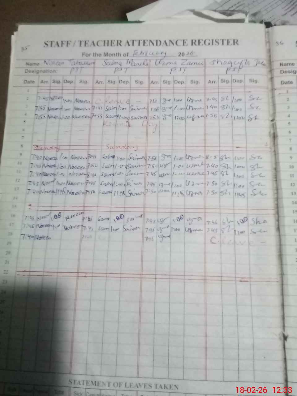 | Name: No**** Ta**** Designation: (School Headmaster's/Headmistress's) PST Phone/Cell Number: 03**** |