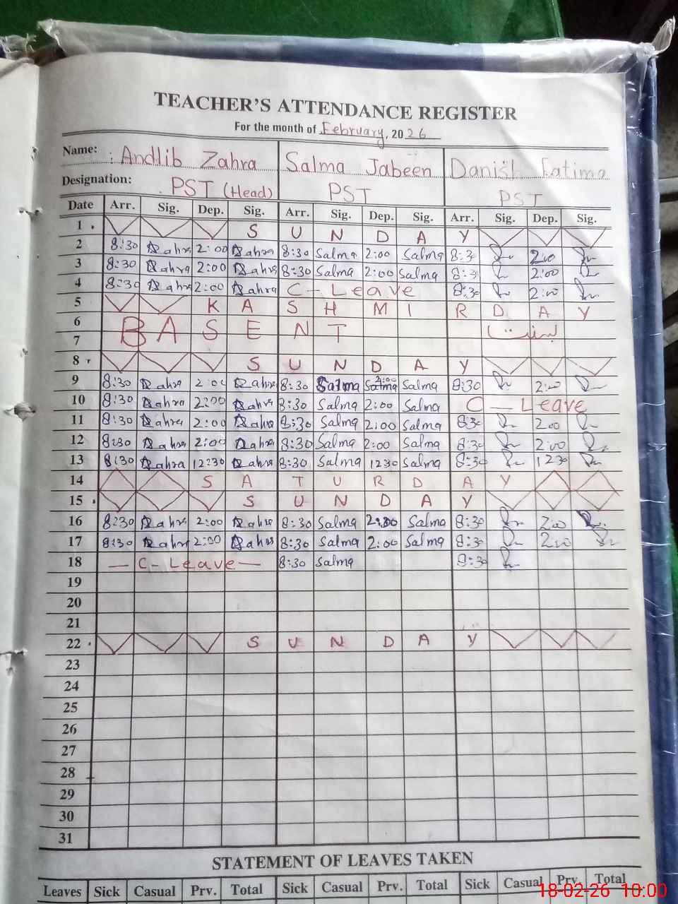 | 33**** | An**** Za**** | PST Science/Maths | Regular | 0 | 0 | 0 | 0 | 0 | 0 | 0 | 0 | 0 | Casual |