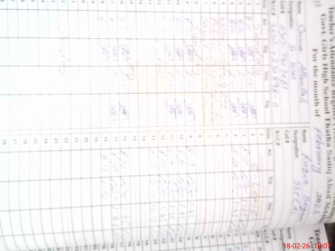 | CNIC | Full Name | Designation | R/C | Absence During Last Calender Month |