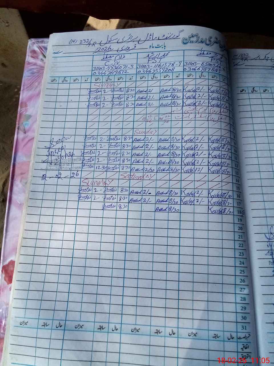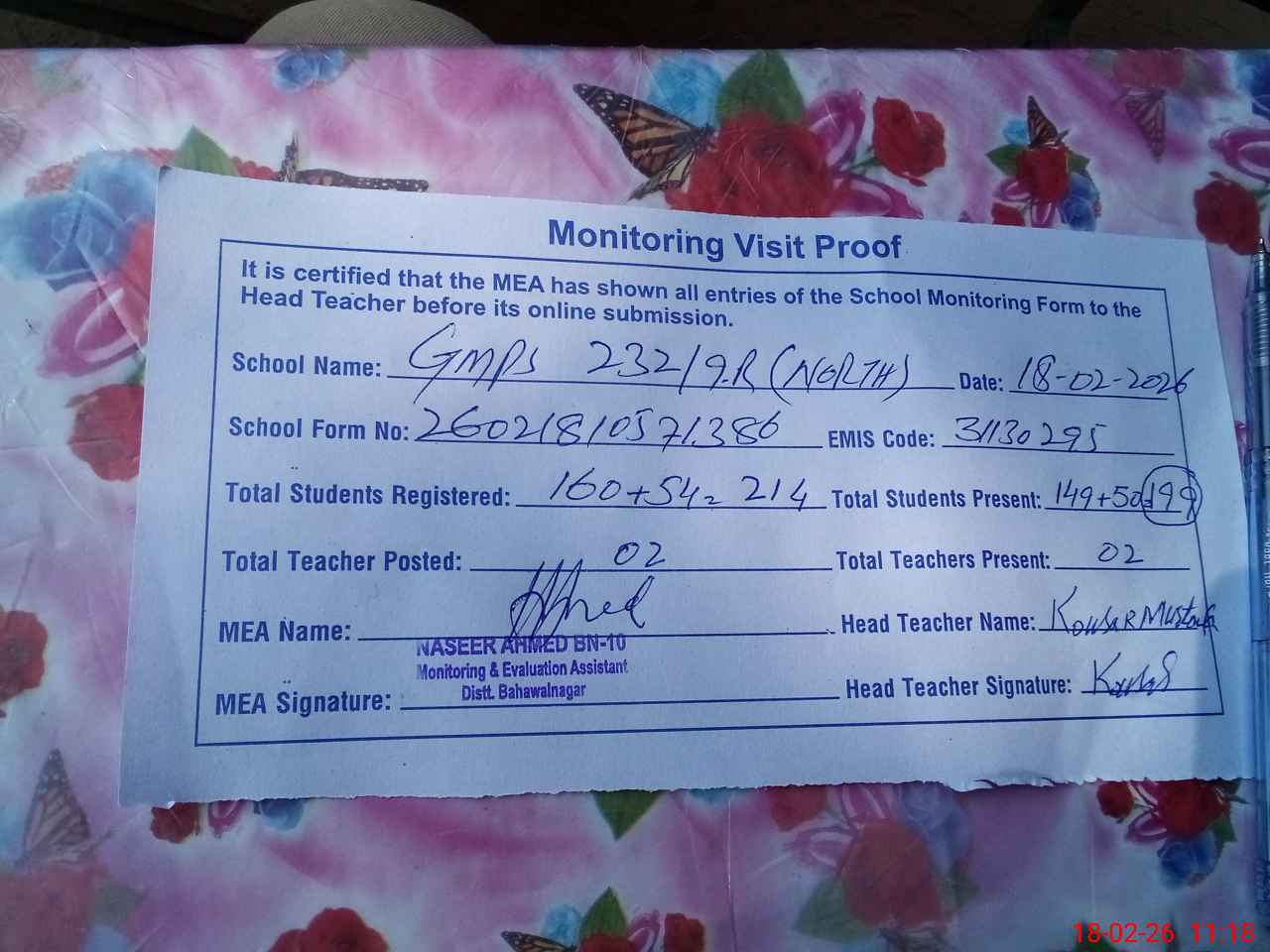 | EMIS Code: 31130295 | Name of School: GMPS CHAK NO. 232/9-R NORTH | |||